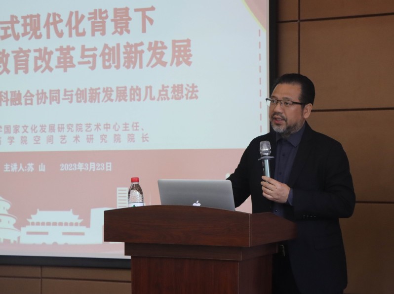 武科大网讯(通讯员于子茜)为进一步活跃我校学术氛围,加强学术交流与合作,3月23日下午,武汉大学国发院艺术中心主任苏山应邀于艺术学院70308报告厅为广大师生做了题为“中国式现代化背景下的高等教育改革与创新发展”的报告。艺术学院副院长袁心平主持本次讲座。